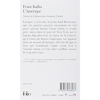 L'AmériqueFranz Kafka Ah Kafka ! quel plaisir de lecture, les scènes semblent avoir été écrites pour un scénario de cinéma tout est détail. En ce qui concerne l'intrigue certaines situations m'ont fait penser à Pinocchio, le pauvre se fait voler, est entrainé dans des affaires où il est quelquefois obligé de mentir... A conseiller aux adolescents.